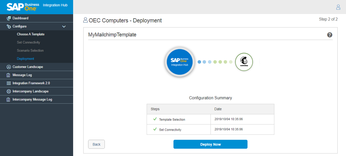 Next Step: Step 2 – Deployment of Mailchimp in the Integration Hub