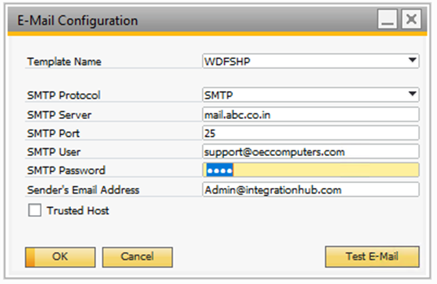 Select the checkbox to add the name of the e-mail server to the list of trusted hosts.