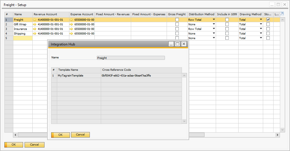 On adding the freight data in SAP Business One, the freight is integrated to Tagrain and the Tagrain surcharge internal id is updated in Cross Reference Code field.