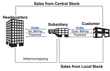 The Intercompany Purchasing (OE.HUB.IC.Purchasing) scenario is intended for large enterprises running SAP S/4 HANA with several sales and distribution subsidiaries or branches in different locations or countries running SAP Business One. The scenario covers both the sales from local (replenishment) and from central stock (drop-shipment) scenario variants.