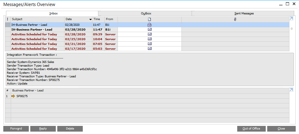 The integration of Lead is bidirectional between SAP Business One and Dynamics 365 Sales.