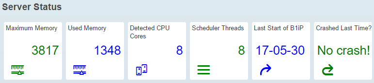 This tile displays maximum amount of memory in Mega Bytes available for B1iP. Clicking on this tile will display the current memory usage of B1iP.
