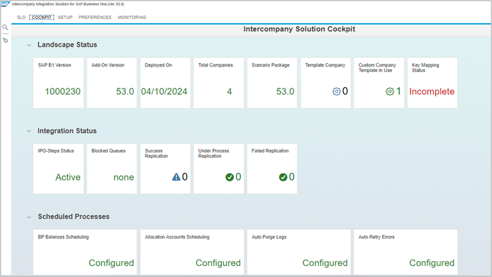 This tile displays the number of companies including in the intercompany landscape. You can click on this tile to view the details of the number of companies in the landscape.