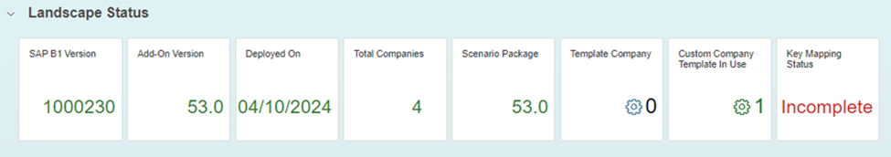 This tile displays the number of Template type companies that exist in the deployed solution, you can click on this tile to view the template companies available in the landscape.