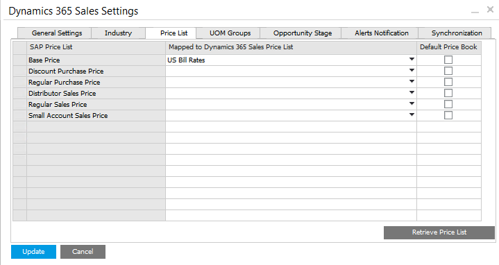 Click on Retrieve button to retrieve Price Book from Dynamics 365 Sales.