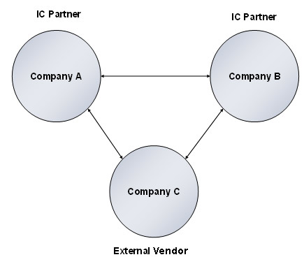 Company C notifies Company B regarding the delivery of goods to Company A. |