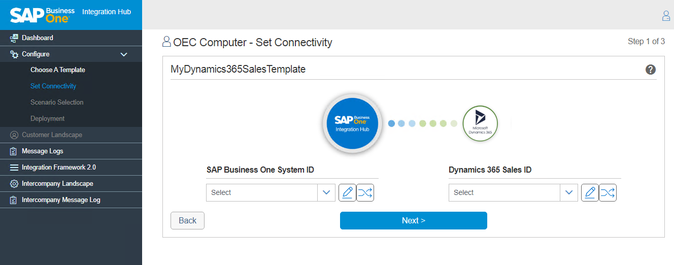Next Step: Step 1 – Set Connectivity of Dynamics 365 Sales in the Integration Hub