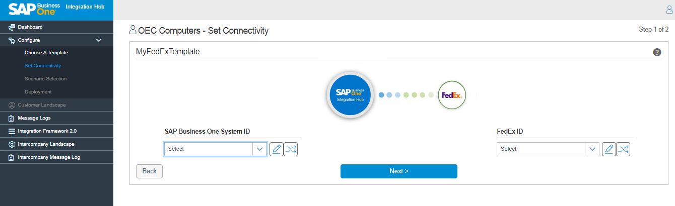 Next Step: Step 1 – Set Connectivity of Fedex in the Integration Hub