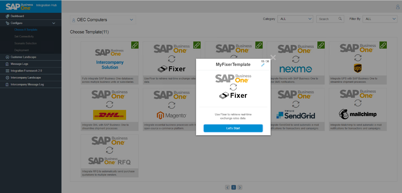 Upon selecting the template, a message “Let’s Start” prompts to start configuring the connectivity settings. Change the template name by clicking the Edit button to edit the template name. Otherwise, it appears as MyFixer Template.