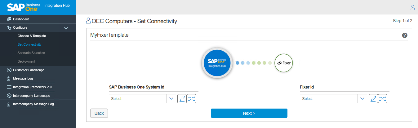 Next Step: Step 1 – Set Connectivity of Fixer in the Integration Hub