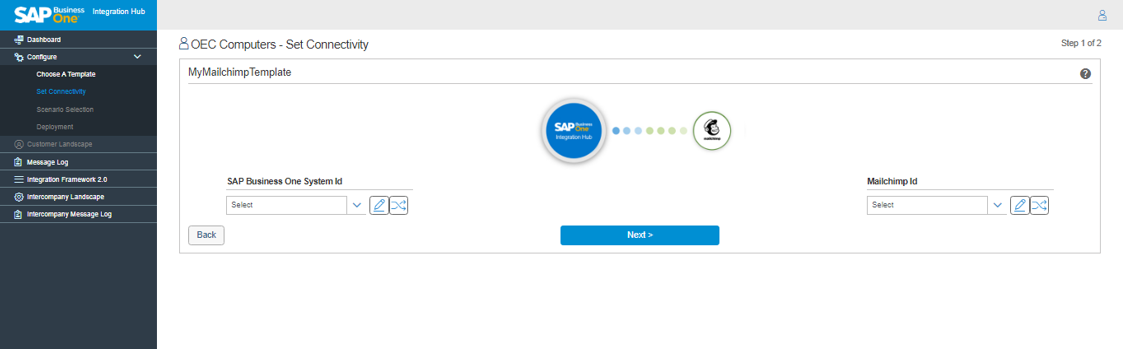 - Upon choosing the Let’s Start button, a Set Connectivity page appears with the following two steps to complete the configurations for connectivity.