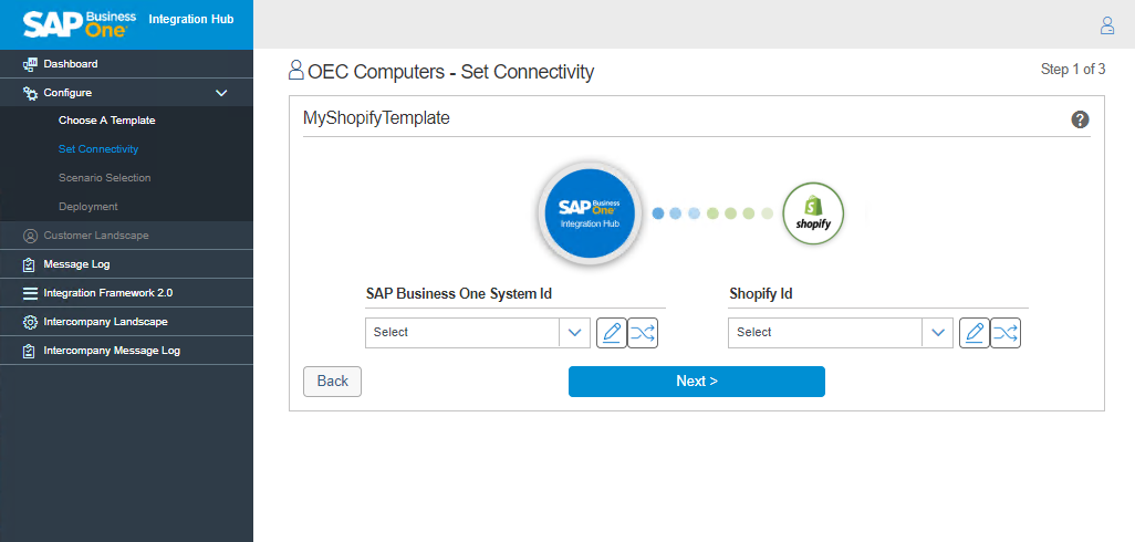 page appears. Perform the following three steps to complete the configurations for connectivity.