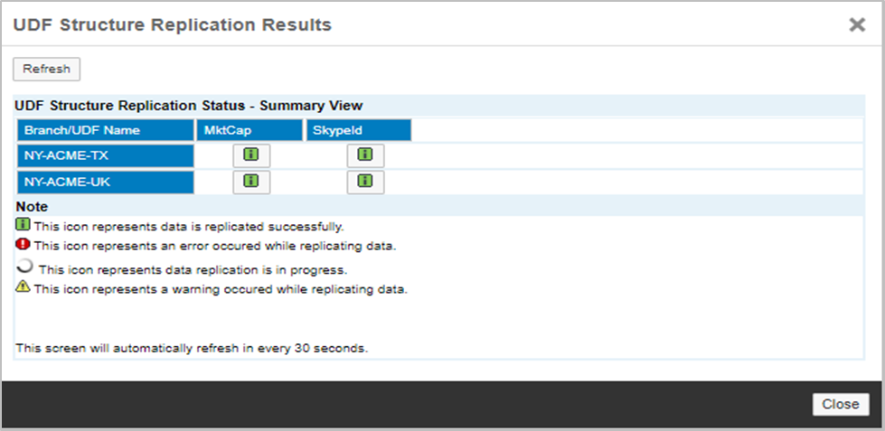 successfully, on the UDF Structure Replication page, the icon is displayed.