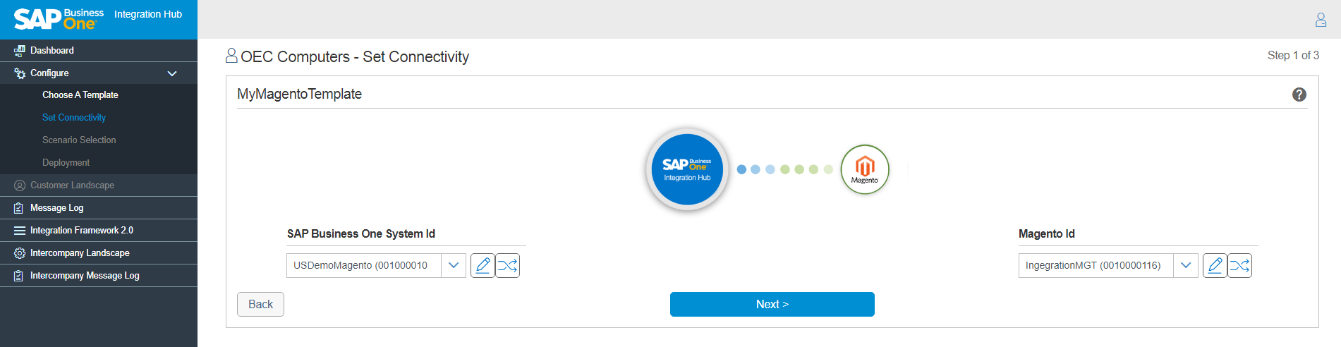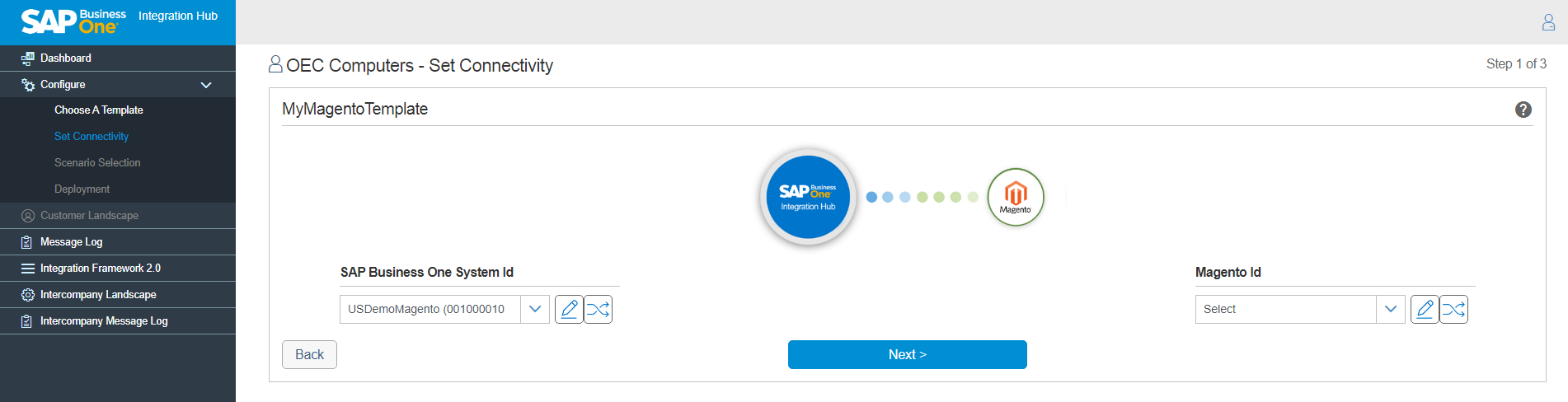 Next Step: Step 2 – Scenario Selection of Magento in the Integration Hub