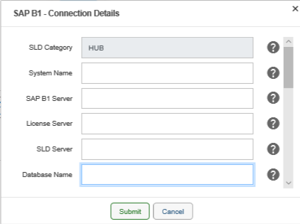 - Enter the valid data and choose the Submit button. An SAP Business One SLD is created.
