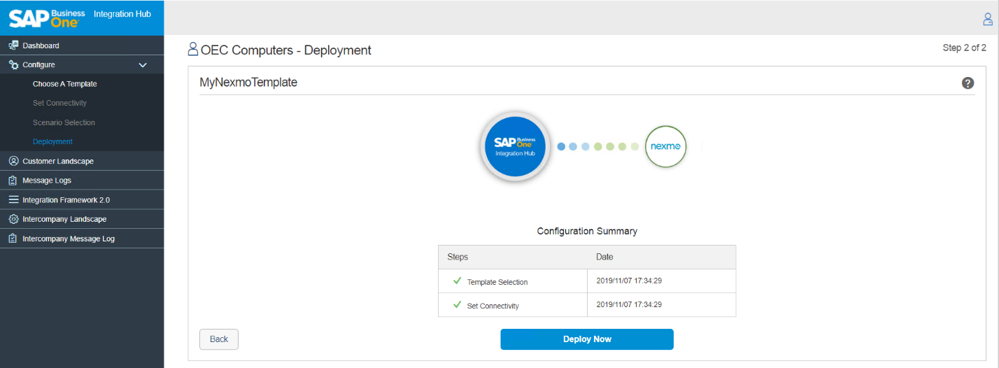 Next Step: Step 2 – Deployment of Nexmo in the Integration Hub