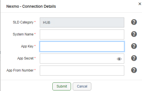 - Provide the valid information in the fields and choose the Submit button. SLD for Nexmo will be created.