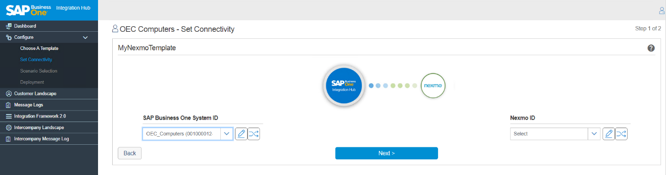 - Choose the SAP Business One SLD to provide the connection between SAP Business One System Id and Nexmo Id.