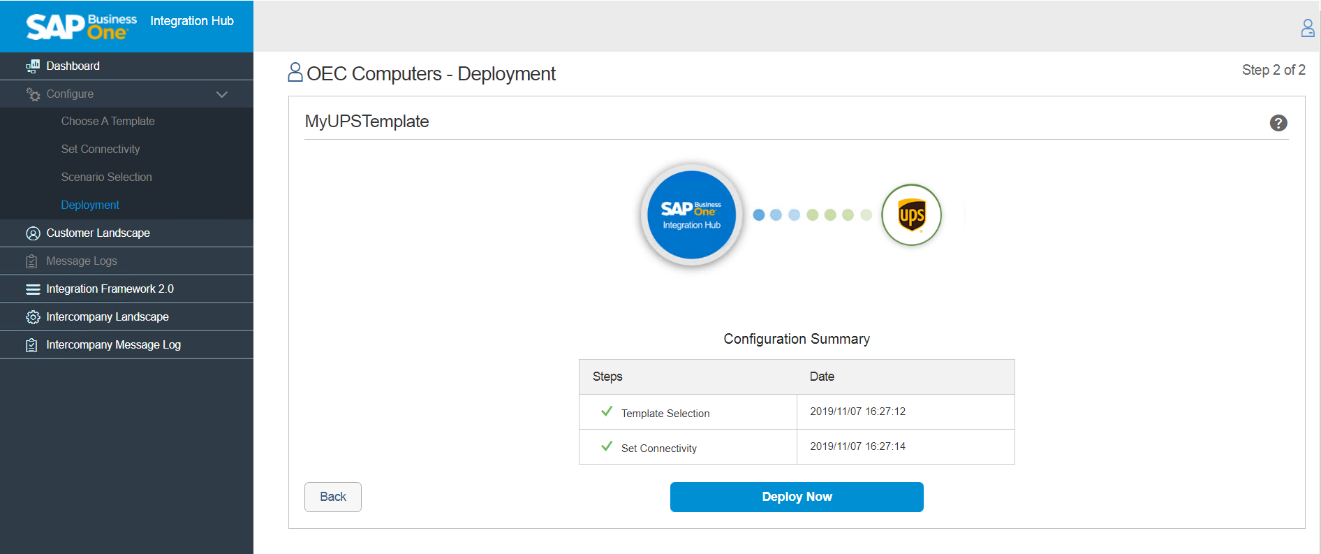 Next Step: Step 2 – Deployment of UPS in the Integration Hub