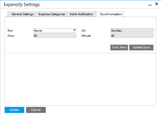 You can configure automatic integrations between SAP Business One and Expensify at a specified frequency (daily or weekly) and on specific intervals. The synchronization runs based on the schedule setting.