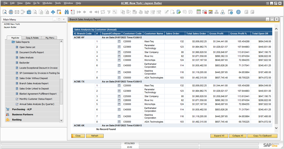 Sample screenshot of the Branch Sales Analysis report is given below for reference:
