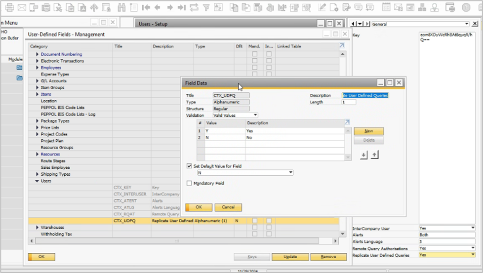 The error "invalid column name: U_CTX_UDFQ" while opening the Query Manager in SAP Business One.