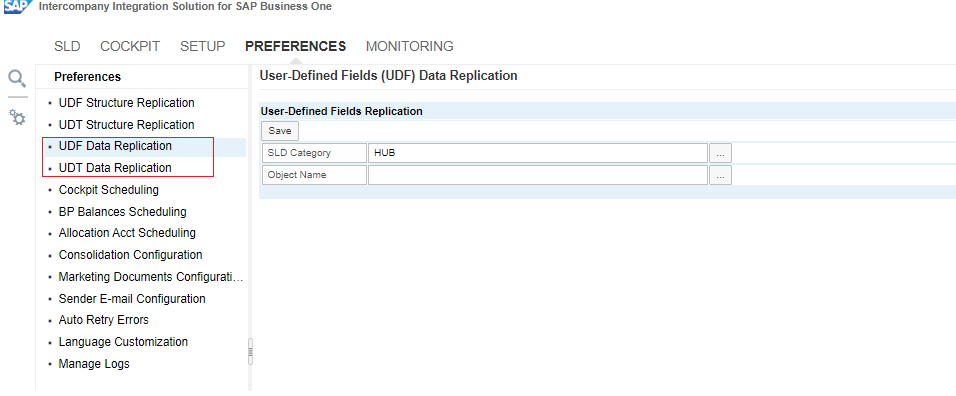 1. In the Administration Console, choose the Preference option in the top menu bar. In the left frame, choose the UDF Data Replication or UDT Data Replication.