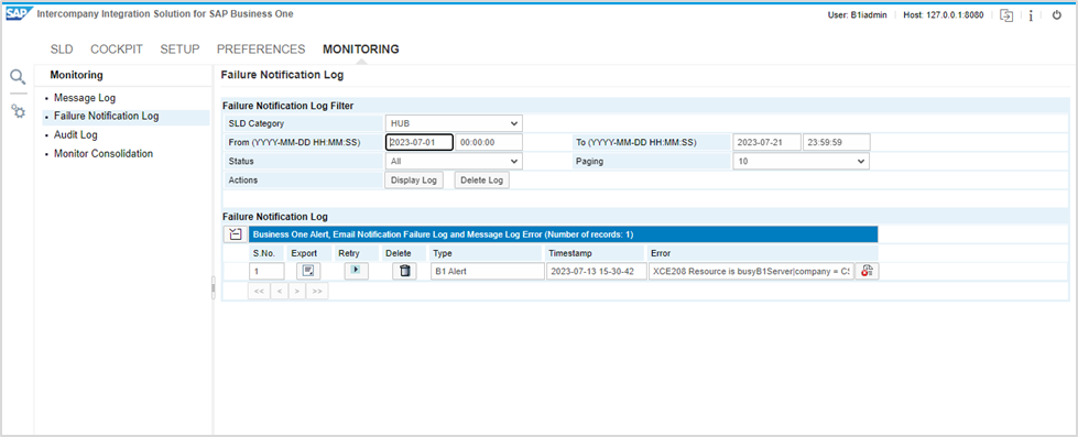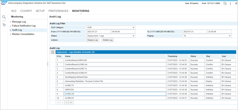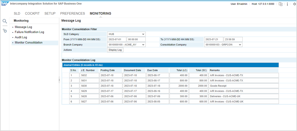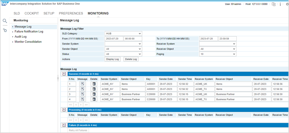 After fixing the SAP B1if issue, screenshots of Intercompany monitoring are given for reference:
