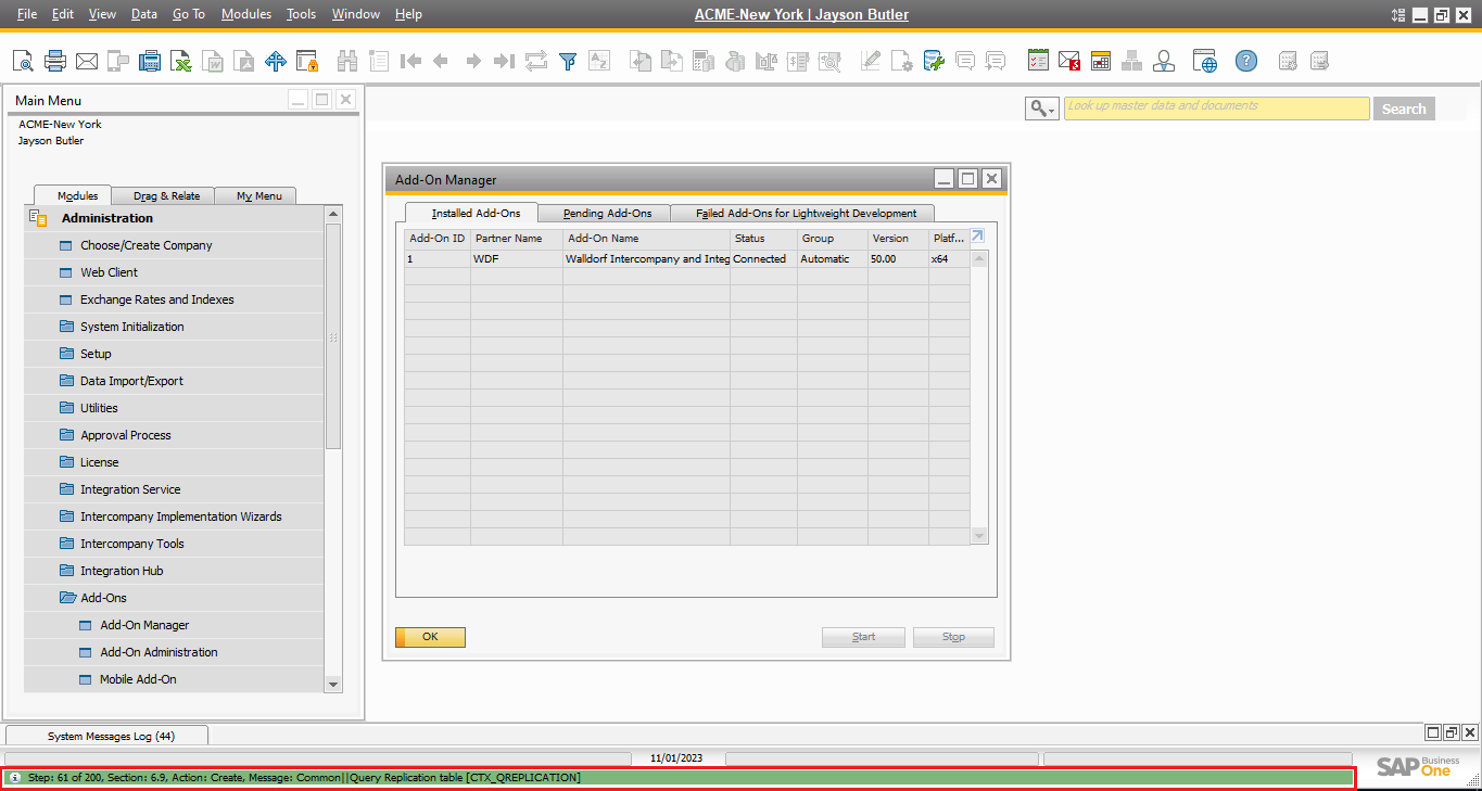 Enhanced progress messages and status updates are valuable features in an Intercompany solution for SAP Business One (SAP B1). When an installation process or related database modification is taking place, providing real-time information about the progress can improve transparency and make it easier to track the process.