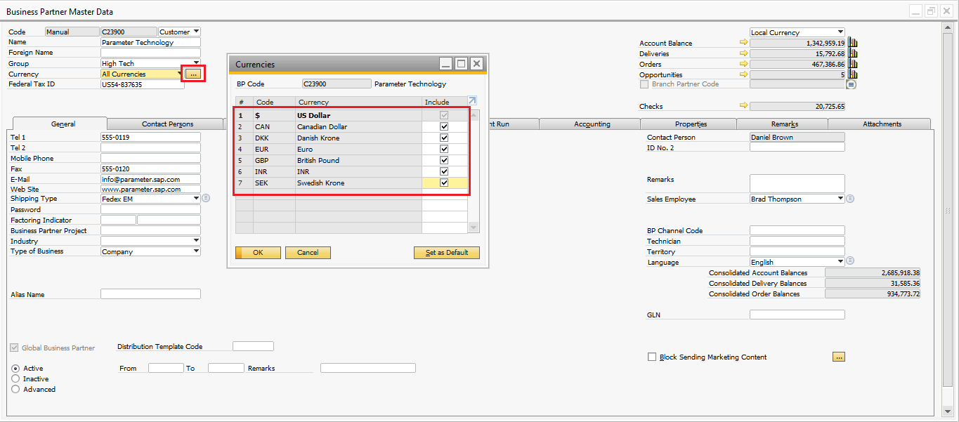 With this enhancement, user is able to replicate the selected currencies in the "All Currencies" list on business partner master data to participating companies.