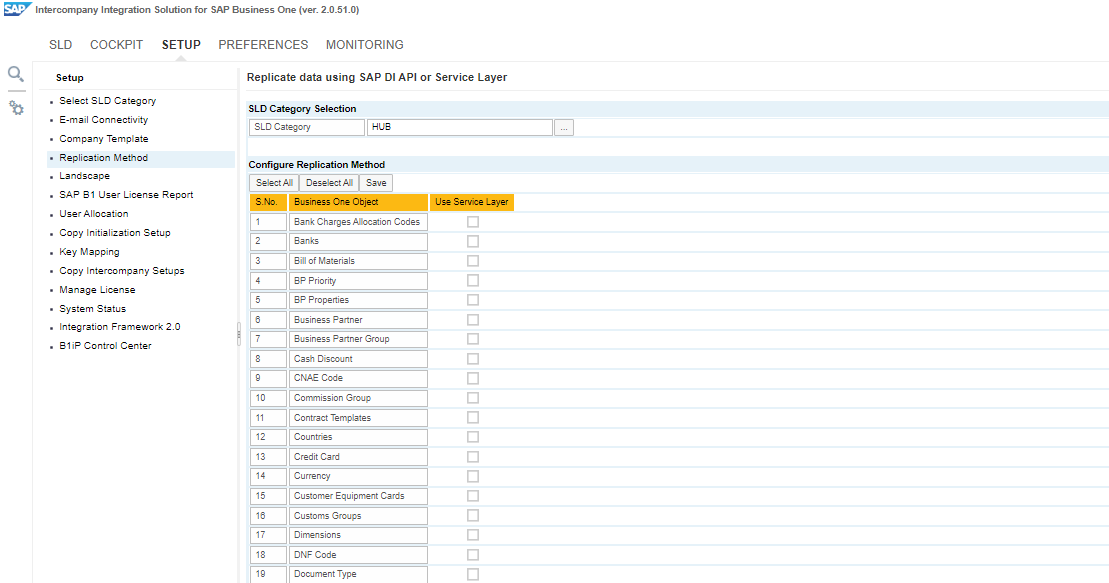For more details on configuring master data replication using Service Layer, please refer to the Intercompany Solution Administrator's Guide.