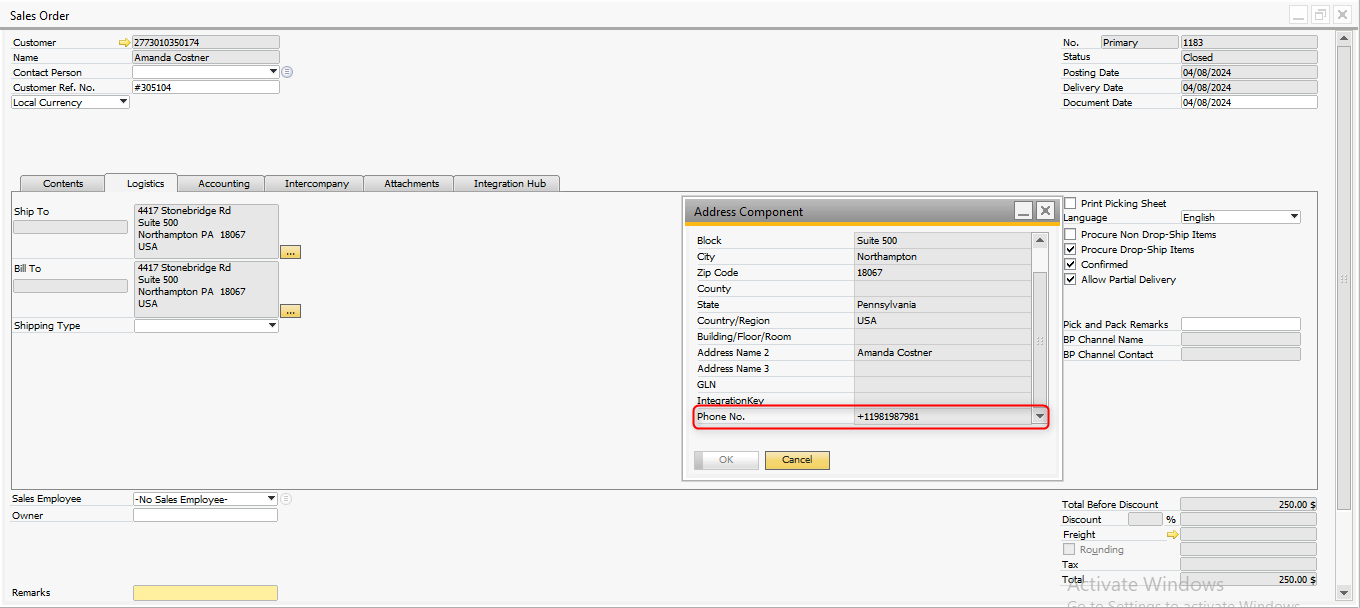 The Shopify Connector for SAP Business One now includes an enhanced feature that integrates customer phone numbers from Shopify sales orders directly into SAP Business One sales orders. This enhancement ensures that customer contact information is accurately captured and readily available within SAP Business One, improving communication and streamlining order processing. By seamlessly integrating customer phone details, businesses can enhance their overall customer service and operational efficiency.