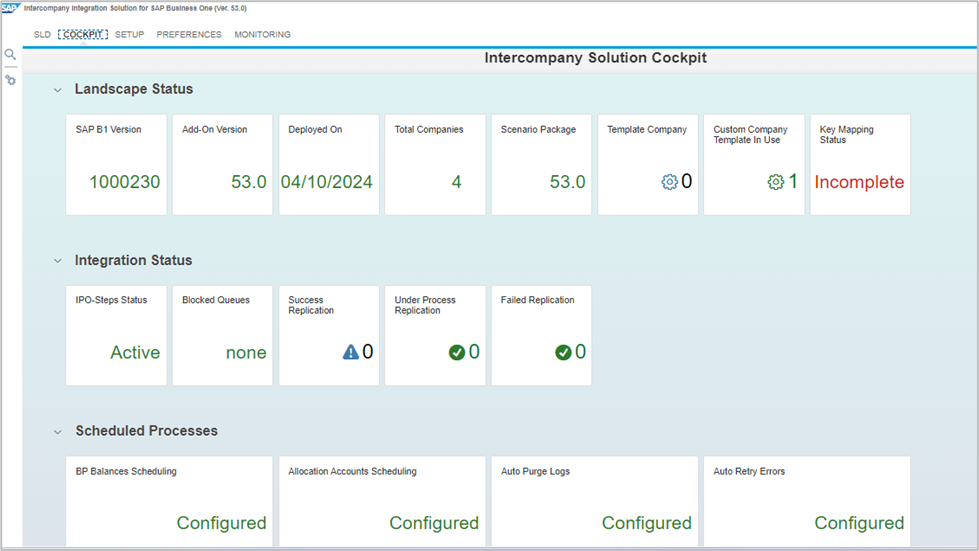 The Intercompany Solution Cockpit provides users with a centralized view of all intercompany-related information on a single screen.