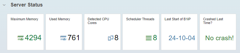 for B1iP. Clicking on this tile will display the current memory usage of B1iP.