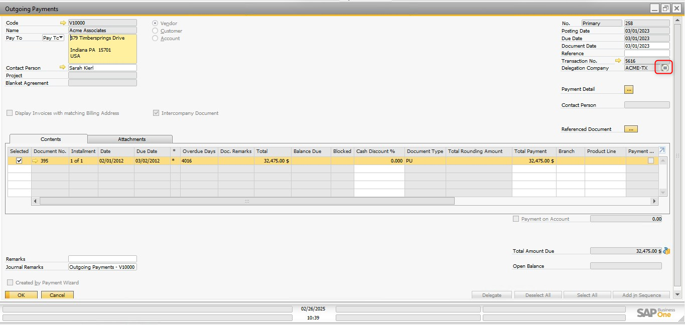 The CFL (Choose From List) button has been added to the Delegation Company field in Outgoing Payments and the Template field in the G/L Branch Allocation screen for easier and more efficient data selection.