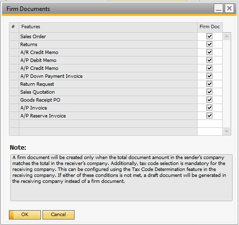 If any of the listed conditions are not satisfied, the system now intelligently handles the exception by generating a draft document in the receiving company instead of completely halting the process. This ensures that the document still enters the workflow and can be reviewed, modified, or approved by the receiving company.