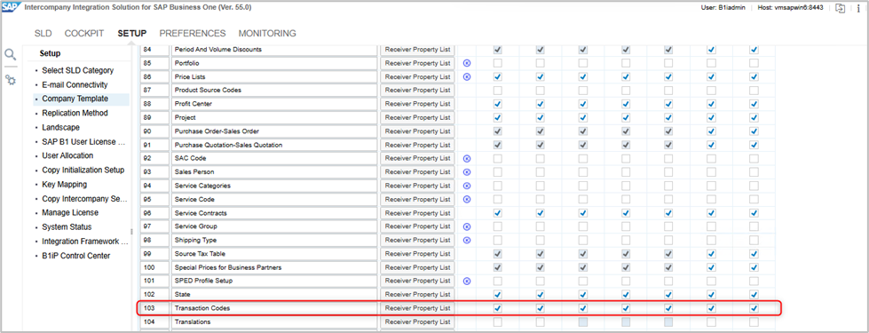 Note: The Transaction Codes object is not selected by default in the company template. The user must manually select the Transaction Code object in the company template if required.