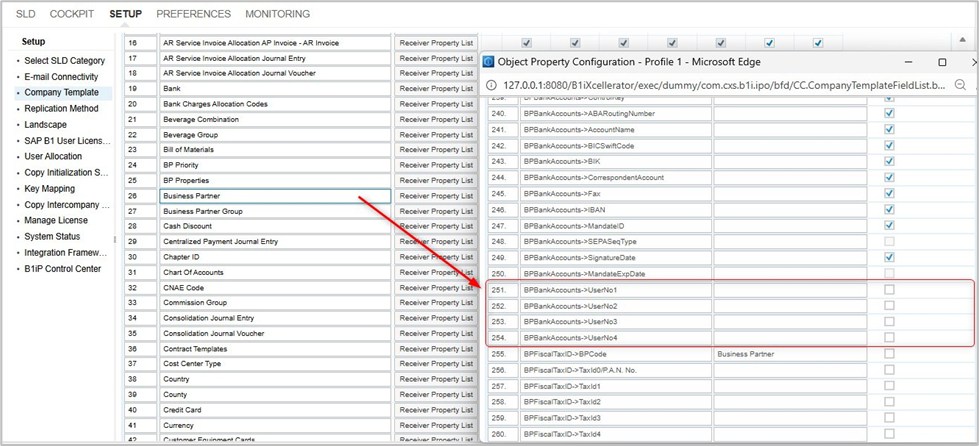 The addition of UserNo1, UserNo2, UserNo3, and UserNo4 properties of Business Partner (BP) Bank Accounts to the Company Template supports consistent data replication across branch companies within an intercompany landscape. By embedding these fields into the template, organizations can ensure that supplementary banking identifiers are uniformly structured when Business Partner information is replicated across multiple entities. This helps eliminate discrepancies and promotes standardized data management across interconnected companies.