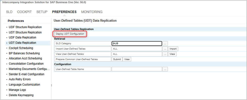 In the current scenario, the Intercompany solution triggers the deployment of the User-Defined Field (UDF) configuration for each User-Defined Table (UDT) individually. Since there was no option to save the configuration of multiple UDTs at once, users were required to deploy the configuration separately for every UDT. This process was time-consuming, especially in environments with a large number of UDTs, as each configuration had to be triggered and processed independently.